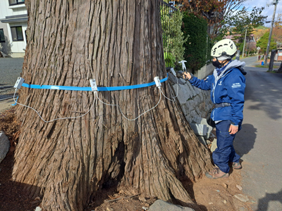 樹木医業務(デジタル樹木診断) ブログ 2025.07.16 2024年11月 岩手県盛岡市 K寺様 大径木のスギに損傷があるため、音響機械による樹木内部検査です。 より精密な診断が可能であり、倒木等の経済的損失を未然に防止する事が出来る診断となります。 関連